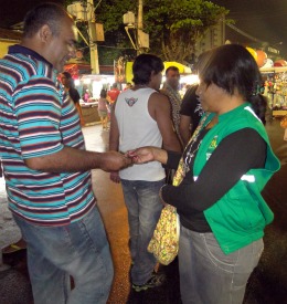 “Por dia, são nove pessoas que compõem a equipe da campanha, sendo que sete educadores ficam em pontos estratégicos nas principais entradas do evento”. Explica a educadora de saúde Ana Flávia.