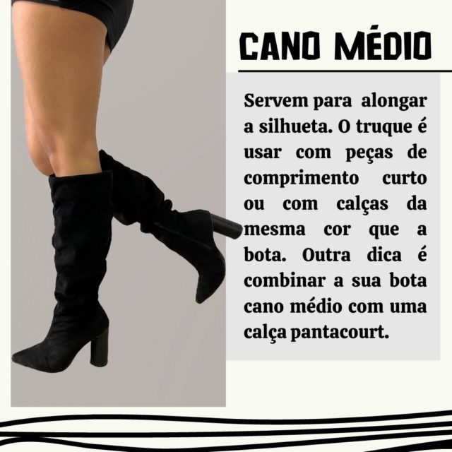 “Quem busca mais conforto escolhe as sem salto, quem usa salto sempre também vai investir em botas de salto e bico fino. Importante escolher bem as cores que vão ser mais versáteis que vão facilitar as combinações com os looks que se pretende usar com as botas. Material sintético tem menor durabilidade, já as de couro são mais resistentes e também mais duradouras”, afirma a consultora.