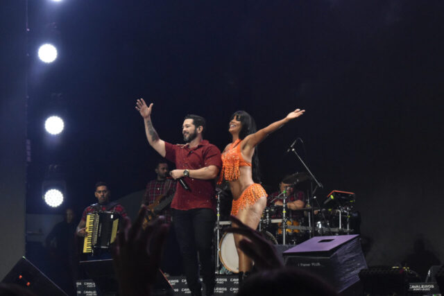 A noite seguiu com Cavaleiros do Forró, banda que há décadas é sinônimo de animação nas festas juninas. Com clássicos que marcaram gerações, a apresentação fez o público dançar do início ao fim.