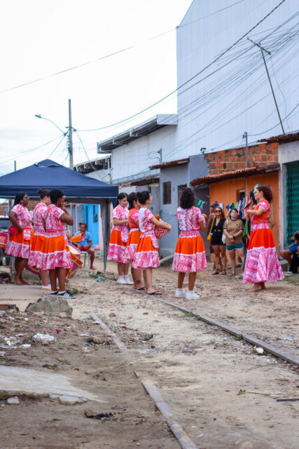 Ao final da programação no bairro do Tambor, o grupo se apresentou, levando ao público a força do maracatu e reafirmando a cultura como instrumento de resistência, pertencimento e transformação social.